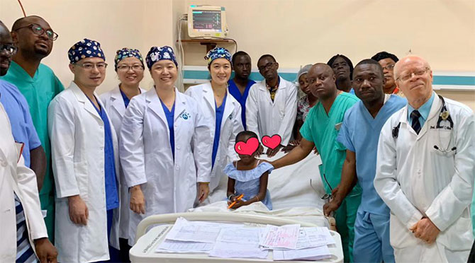 2015年至今,我院派出5批专家组赴加纳中部库玛西教学医院和首都克里布教学医院和大阿克拉地区医院免费开展了52例心脏手术,其中冠脉支架植入手术13例,植入心脏起搏器23例,心脏瓣膜置换、先天性心脏病心血管外科手术16例。我院在刚柔并济、有的放矢的培训下,共培养加纳心血管内科医生12名,护士7名,学成回国的加纳医护人员已组成一支心脏介入治疗的心血管手术队伍,大大提升了加纳乃至非洲心血管专科水平。“爱心行”谱写了加纳高端医疗服务的新篇章,成为中国援助非洲的国家标杆性项目。