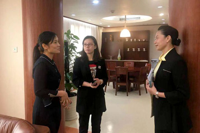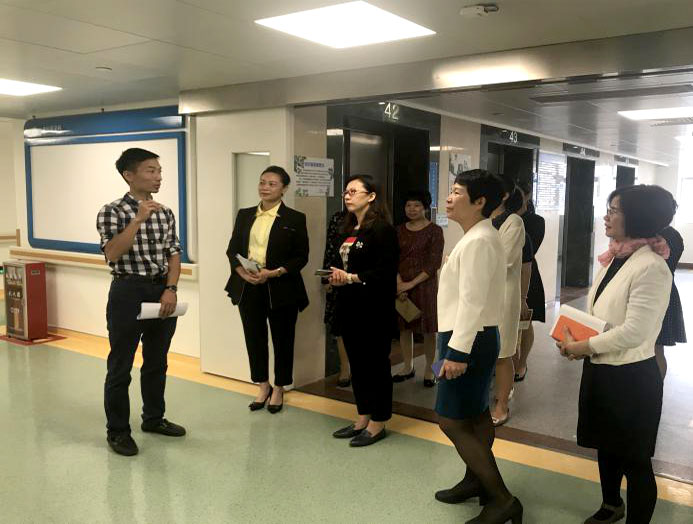 会议结束后,专家组一行分别来到我院的全科医学病房及省级病房参观调研。全科医学科何斌斌护长介绍了我院智慧病房的试点工作情况,省级病房王小霞护长介绍了我院的干部保健工作,孙主任对我院的保健工作表示高度赞扬,也对我院先行的智慧病房建设提出了宝贵建议。