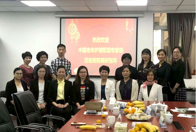 人口老龄化已成为日益凸显的社会问题,提供生命全周期的护理是社会对护理工作提出的新的要求。2019年8月,北京大学组建国家老年医学中心并成立中国老年护理联盟,护理联盟在国家卫生健康委员会指导下,由国家老年医学中心牵头发起的产学研联合性交流平台,是国家发展老年护理事业的重要社会力量,成员单位覆盖了全国25个省份,我院为常务理事单位。10月31日上午,由北京医院护理部副主任孙超带领的中国老年护理联盟专家组团队来访我院调研指导。会议由护理部主任陈凌主持,林展翼副院长、护理部陈凌主任、崔虹副主任、卢少萍科长、许智红科护士长及老年专科小组的团队成员参与了此次交流活动。
