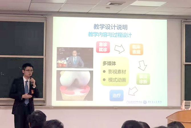我院青年教师近期获此成绩与院领导将教学提升到前所未有的重视高度密不可分。教育处成立以来,密集组织多场大规模师资培训,在全院教师中激发出教学热情和教学“大练兵”的良好氛围。秉着“以赛促建”的理念,在授课比赛前教育处组织两场授课技能专题的讲座,邀请中山大学附属一院专家为全院授课老师们进行培训,讲授本科教学授课规范和用语言技巧、肢体语言、ppt制作、课 堂互动等比赛技巧,并多次组织本院专家为参赛选手“打磨”课程设计、ppt制作和授课中的节奏、仪态、互动等细节,精益求精。最终周雨以温文儒雅的台风,精巧生动的课程设计,精美大方的PPT制作,突出、透彻的重点难点讲授,起落流畅的整体节奏,赢得了专家评委、教师代表和学生评委一致好评,经过两轮激烈的竞争,在参赛的46家非直属附属医院的55选手中得分第一,获得非直属附属医院组一等奖。
