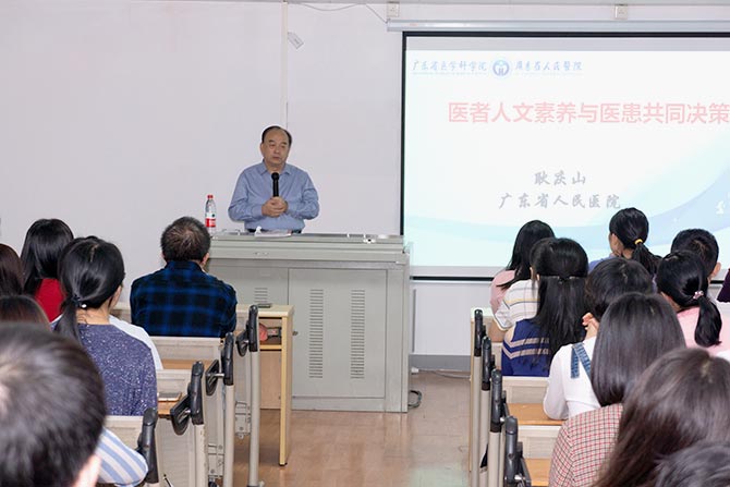 耿教授在课堂上分享广东省人民医院医学人文建设经验。他立足广东省人民医院开创“白求恩”学堂,致力于增强医疗专家的人文素养,打造医院管理者“黄埔军校”,从2015年4月30日至今已经推出184讲,培育了大批人文医学学者、领导者和践行者。近5年来,他结合研究所得和实践经验,将人文医学引入心血管南方会平台开设人文医学论坛,呼吁全国数万名参会医务人员当医学人文的研究者、践行者和推动者。