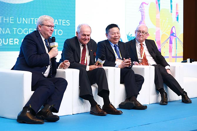 会议在CTONG主席、我院终身主任吴一龙教授的致辞中拉开帷幕。出席会议的专家有MSK国际项目高级副主席Murray Brennan,会议联合主席、MSK肿瘤内科的Bob Li教授,前澳大利亚总理、现任美国亚洲协会政策研究所主任Kevin Rudd(陆克文)先生。陆克文先生以一口流利的中文发表了题为“抗癌战争中的美中联盟”的精彩演讲。他指出,健康是全人类共同的追求,在这种新的形势下,美中之间一定能找到新的合作方向,在这场“抗癌战争”中再次成为坚定的盟友,为两国人民的生命与健康而奋斗。