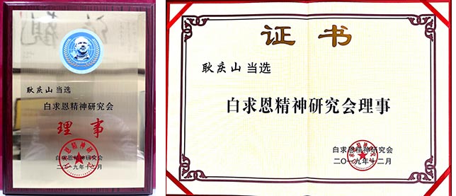 党委书记耿庆山增选为白求恩精神研究会第一届理事会理事
