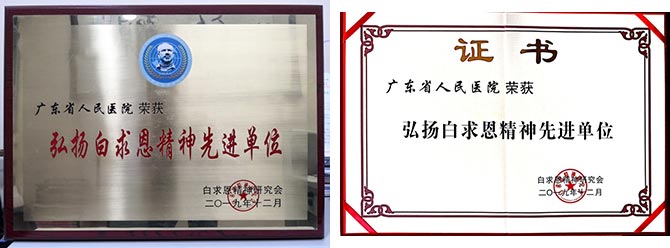 我院荣获“弘扬白求恩精神先进单位”荣誉奖牌及证书