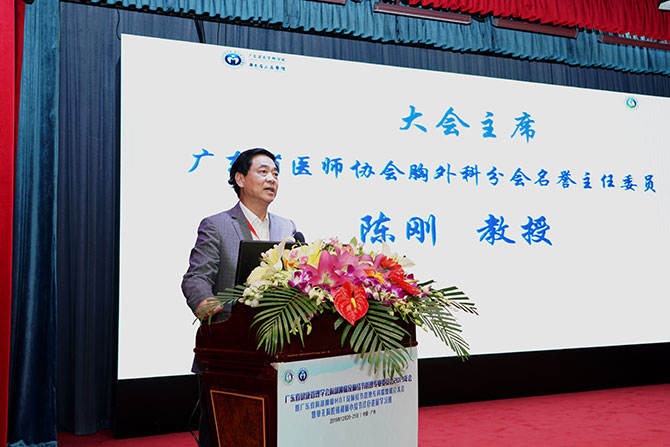 会议由广东省健康管理学会胸部肿瘤及肺结节管理专业委员会主任委员,广东省人民医院胸外科周海榆教授主持。广东省医师协会胸外科分会名誉主任委员陈刚主席致辞,他肯定了肺癌早筛及肺结节管理作为胸外科工作的重点,结合呼吸科、肺部肿瘤科、影像科、体检科多学科力量,科学管理,避免漏诊及误诊,有赖于多学科专家的共同参与。广东省健康管理学会冉炜会长肯定胸部肿瘤及肺结节管理专委会抓住亮点,工作扎实仔细,极富活力!在学科发展中专委会得到各个领域的专家教授的鼎力支持,工作越来越出色! 肺结节管理落到实处,加强肺癌早筛,拯救更多的肺癌患者发挥自己的作用,并做积极探索,期待有开拓性的工作。