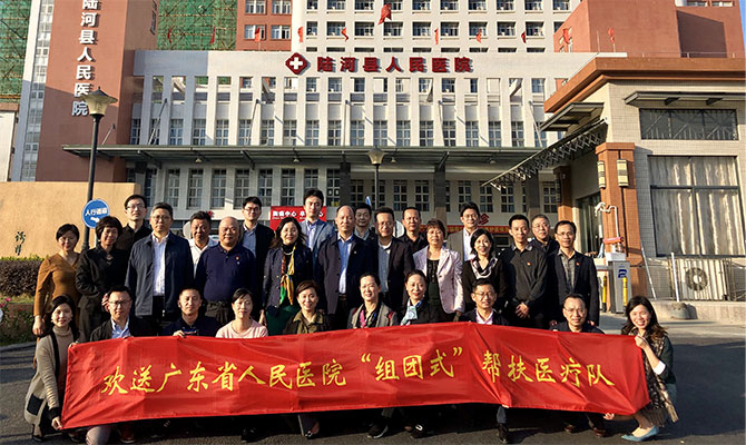 2018年11月26日,广东省人民医院第一批“组团式”帮扶工作队进驻陆河县人民医院,正式开启为期三年的“组团式”帮扶工作。他们扎根基层医院,帮助我们强化行政管理,完善诊疗规范,不断开展新技术,系统地开展讲学、疑难病例讨论和教学查房等活动。他们具有强烈的主人翁精神、极强的奉献精神、极高的专业素养、良好的职业道德、极佳的学者风度。在他们的实地帮扶下,一年来,我院管理规范了、效率提高了、技术进步了,氛围浓厚了,群众满意了。他们为患者提供了不出县城就可以享受省医专家服务的平台,开展各项医疗活动及健康扶贫工作,有效缓解了因病致贫、因病返贫的问题,切实让老百姓体会到对口帮扶、共享医疗资源的好处,赢得了他们的高度赞扬,同时也为我县脱贫摘帽提供了坚强有力的保障。