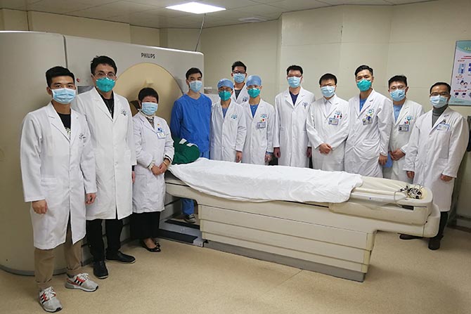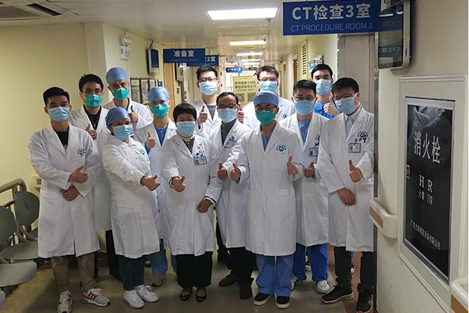 1月17日,放射科赵振军行政副主任和阮骥主管技师参加医院召开的紧急会议后,马上在科室内传达了会议内容。放射科在医务处、感控科等相关部门的指导下制定了广东省人民医院放射科新型冠状病毒感染预防与控制指引(试行版),并将此指引发到科室微信工作群,要求每位同事务必掌握。