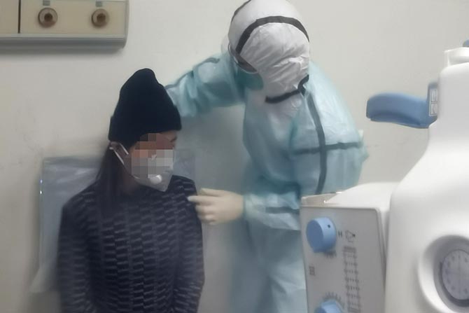 影像检查,特别是X线平片和CT检查,在此次新型冠状病毒感染肺炎的诊断中发挥着至关重要的作用。为能够安全高效的进行影像检查,郑君惠技师长在技术组微信工作群、技术组早交班会上等反复强调各项工作的具体流程,并在实地认真考察,现场布置包括发热门诊、感染科的床边DR的联网和放置位置等,并组织了相关演练。在此同时,郑君惠技师长还督促所有技术组同事利用下班时间接受医院提供的防护培训。
