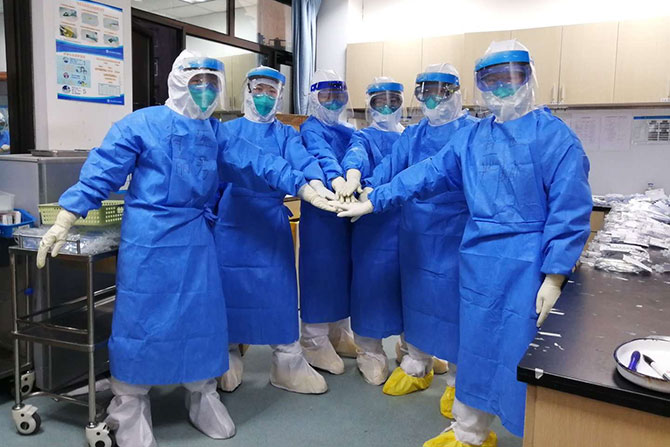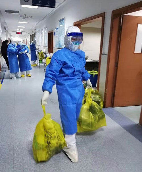 路上我们一如既往的不断加快脚步,生怕前一班的战友会等太久,因为我们每一个人心里都知道穿着防护服工作几个小时是什么滋味。但我们在不断加快脚步的同时,还会互相提醒一会穿防护服,戴口罩、手套、帽子、护目镜等时一定要认认真真的做好每一步,互相监督,互相检查。保护好自己才能更好的护理患者。我们组的组长,广东省人民医院陈丽芳不停的叮嘱我们一定要小心,保护好自己,如有不适或有困难跟她说,她想办法。