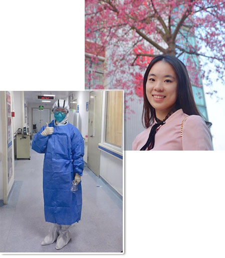 崔艳铭,我院2017级内科住培学员,年初三一大早她便匆匆赶往医院,赶着去交班查房开始一天的工作。感染科的工作还是同往日一样琐碎繁重,而新型肺炎的蔓延更是让忙碌的氛围又多了一份凝重。已经是入培的第三个年头了,三年的临床工作学习历练已让她成为了一位可以独当一面的内科医生。她认为春节值班便是职责所在,并不是什么特别的事。被安排在感染科值班当天陆续收诊了多名患者,其中有已确诊的。她坦言,每天跟随主任全套武装进入隔离区查房,第一次进病房的时候确实有点慌,也怕,但是真的去到病房见到病人的时候就很自然进入医生的角色了。再到后面多收几个病人心态就跟平常差不多了。感染科的老师很辛苦,好几个老师都是连续上班没休息过,中医科的老师们还特地煮了提高免疫力的凉茶给我们送来,这个春节,我们并肩作战,医院配送的物资和温暖的工作餐也让我们更安心地坚守在这片战场。”