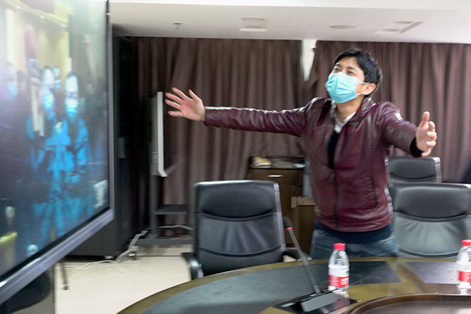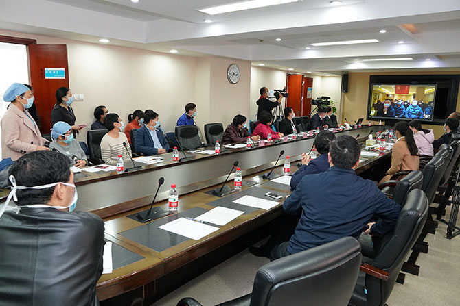 “武汉加油!”“平安归来!”“我们一定抗‘疫’到底!”……朴素的语言,传递着两端拳拳的牵挂;铮铮的誓言,表达着真切的期望。千里挂念一线牵,2月12日下午3点,耿庆山书记、余学清院长带领全体院领导、部分职能处室和科室负责人、7名队员家属代表通过网络视频连线,向除夕夜驰援武汉汉口医院的我院18名医疗队队员进行了亲切慰问。随着会议主持人、党委副书记何斌点通线上连接,队员们在线上与家属们“一诉衷情”,与领导和同事们交流起战斗体会,表达思念问候,表示了与疫魔决战到底的决心。