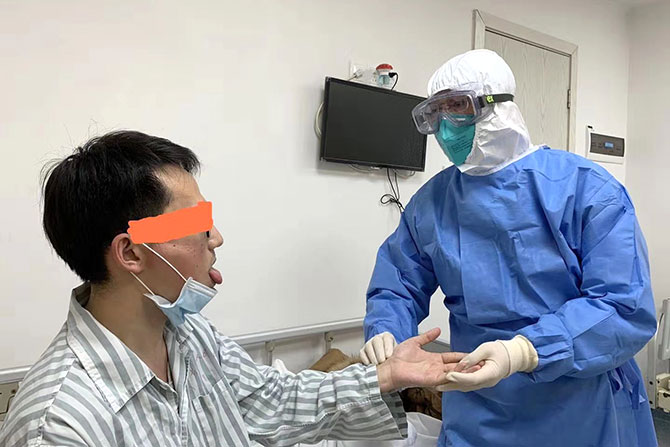 为响应国家卫健委、中医药管理局《关于进一步做好新型冠状病毒感染的肺炎中西医结合救治工作的通知》要求建立中西医结合救治工作机制,推动中医药参与新冠肺炎医疗救治工作的号召,正在纠结没能上武汉防疫前线的林举择和兰小和两位中医师临危受命,被医院派驻我院感染一区和二区参与新冠肺炎的一线救治。他们每天穿着厚重隔离防护服来到隔离病区,近距离给确诊和疑似患者望、闻、问、切,辨证施治,还重视给患者心灵抚慰,并密切观察新冠肺炎发病的中医临床特征及演变规律,分析中医药治疗的切入点和有效点,与西医同道一起,不断优化完善中西医结合诊疗方案,提高了我院新冠肺炎临床救治的整体效果。为此,患者给他们发来了短信:“林医生今天愿意来我们病房让我们很暖心”、“医者仁心,有您在,我们病人才更加有信心战胜病魔”,是的,患者用最朴素的语言表达了对白衣天使的感激之情!
