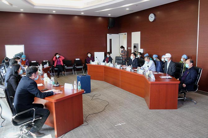 为进一步落实好对口救治工作,提高深圳危重型新冠肺炎患者的救治成功率,2月24日中午,余学清院长率救治新冠专家组成员及医院办公室、医务处、护理部等部门负责同志赶赴深圳市第三人民医院,与深圳市卫健委和深圳市三院领导、深圳市新冠肺炎救治专家组成员及主管医生一起就深圳市三院新冠肺炎病人收治的现状、存在的问题,进行了充分交流。余学清院长代表省医表态,广东省人民医院将按照省防指的要求,全力以赴协助深圳市第三人民医院做好新冠肺炎病人的救治工作,并就将来工作的机制进行深入细致的交流。
