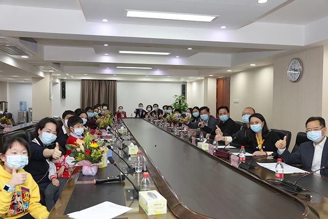 参与此次视频的连线的,还有支援武汉汉口医院的全体队员、支援武汉亚心医院的“爱心特攻队”、支援荆州市中心医院和荆州市第一人民医院重症医学精锐专家、驻点支援深圳市第三人民医院的专家。时短情长,在座家属和同事一一与防“疫”一线的队员们问候。院领导班子、职能处室负责人一起为到场的队员家属发放了三八节礼物。