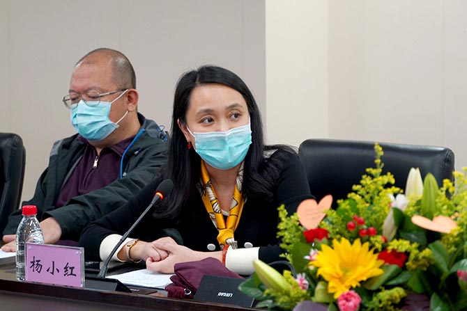 余学清院长代表医院党政班子、全体职工向前线队员和家属表达亲切慰问,祝女同胞们节日快乐。他特别转达了耿庆山书记的问候,耿书记因为广东省疫情应对指挥部的重要工作无法到现场,但他心系队员,请余院长代问候和致敬队员。余院长说,不仅是医院领导,包括省委、卫健委等各级领导,得知今天的这个视频连线,都嘱托他带去他们对前方队员和全体医务人员的牵挂和慰问。他说,医院从战“疫”的第一天开始,始终把医务人员的安全和健康放在第一位,让医务人员没有后顾之忧,才有精力和斗志照顾好病人。“今天的鲜花献给你们的家人,献给你们的鲜花,待你们凯旋之日我去机场补!”余学清院长说。