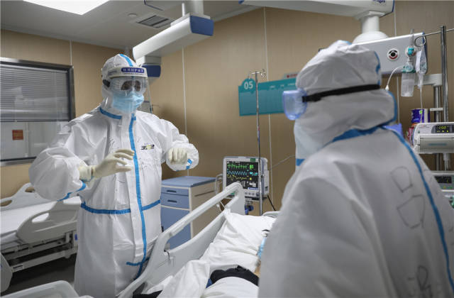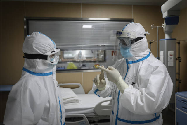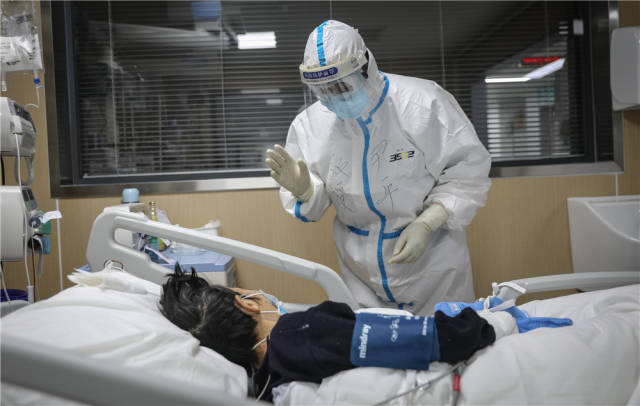 上午11时,尹平穿戴好三级防护装备,走入武汉亚心总医院改造而成的新冠肺炎重症病房。该院护长吕璐已经在病房内通道等候,把尹医生引导到张婆婆的床边。