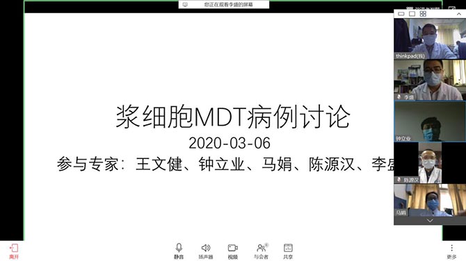 肾内科(王文健、陈源汉、李盛)、血液科(钟立业)和消化科(马娟)共同参加多学科网络视频会