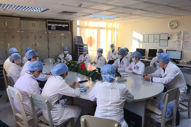 血液病患者免疫力低下,防疫任务更加艰巨。留院患者多数病情危重,医护工作量强度增大;因疫情影响,加剧了假期一线值班医生人员不足,全科主动放弃休假或提前结束休假,回到科室增援。科主任、护士长以身作则,春节期间每日回病房安排部署、查看患者,并且统筹安排吴穗晶、陆泽生、罗成伟、钟立业等主任上加强班,指导和协助一线医生工作,危重患者全科集体讨论,保证医疗安全。全科上下一心、不计较个人得失、集体凝聚成一股力量共克时艰。