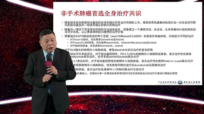 故事总是要讲到最后,会议进入了由清华大学陈晓媛教授主持的最后篇章。随着肺癌领域的蓬勃发展,曾经认为的单一病种——肺癌已经被认识到其实是具有高度异质性的疾病,因此给未来的临床研究和新药研发带来挑战。面对这一挑战,陆舜教授和吴一龙教授带来了“肺癌临床研究发展趋势”及“不可切除局部晚期/转移性NSCLC起始治疗专家共识”。
