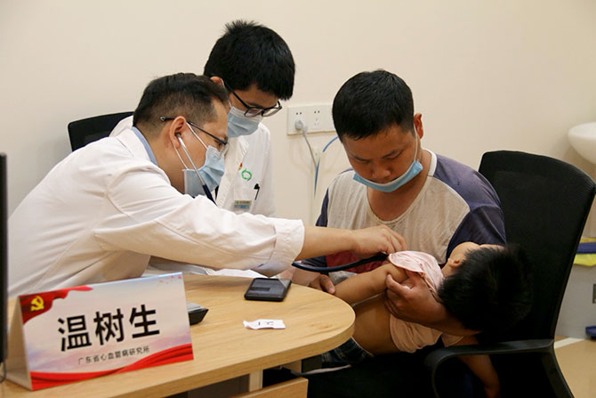 党建交流结束后,当日在中山市博爱医院医技楼开展儿童先心病免费筛查义诊活动,心研所与该院共11名专家坐诊,三个小时的活动共吸引了50个0-6岁的儿童在家长的陪护下前来义诊咨询。