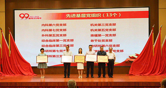 在防控新冠肺炎疫情的斗争中,省医人秉持“若有战、招必回、战必胜”的信念,最美逆行的身影守护各个战场,充分体现了敬佑生命、救死扶伤、甘于奉献、大爱无疆的医者情怀。大会上表彰了18个先进基层党组织、148名优秀党员、38名优秀党务工作者。黄惠根副院长宣读七一表彰决定,耿庆山书记、何斌副书记、严晋纪委书记、袁向东副院长、李欣副院长、黄惠根副院长为领奖代表颁奖。