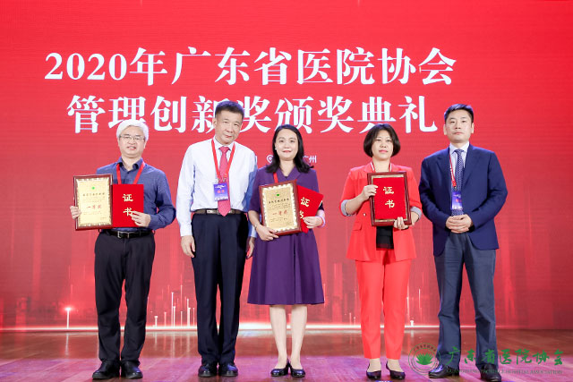 由我院余学清院长牵头,信管处携手医务处共同申报的“智慧医疗 让医疗更安全更高效更温暖——广东省人民医院5G智慧医疗发展新思路”案例荣获2020年广东省医院协会医院“管理创新奖一等奖”,杨小红副院长出席大会并代表我院领奖。