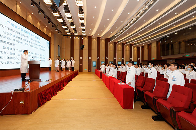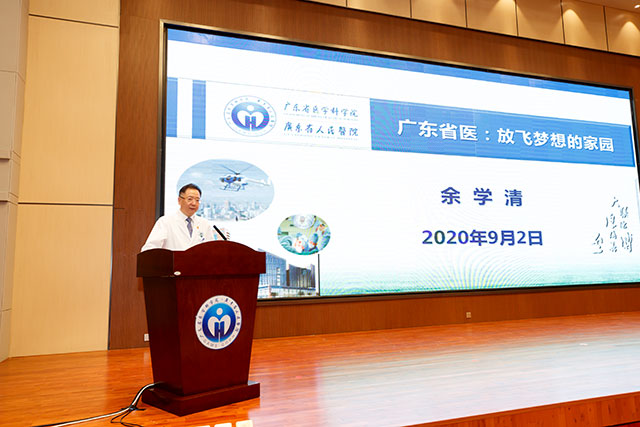 余学清院长为新员工带来题为《广东省医:放飞梦想的家园》专题讲座。他从医院历史开始,为大家介绍了省医长短期发展规划、未来的工作重点。他说,省医正值良好的发展机遇,全体职工鼓足干劲,以广东省高水平医院建设(登峰计划)为契机,积极推进区域医疗中心建设,对标国际先进水平,加强人才队伍建设,抓党建促业务。余院长传授给新员工“信心、毅力、汗水”三把“秘匙”,要求大家做到“中国自信、制度自信、文化自信、道路自信、科学自信”。最后,他以“此生无悔入华夏,来世还做中国人!”精彩结语。