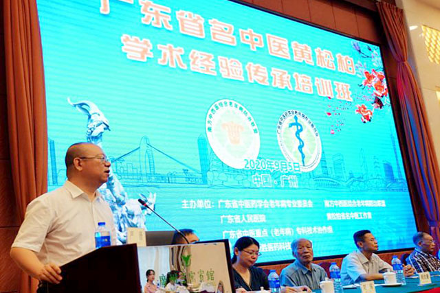 9月5日,由广东省中医药学会老年病专委会、我院主办的黄松柏名中医经验传承培训班在广州隆重举行。广东省中医药局李梓廉副局长、我院严晋纪委书记、教育处郭莉莉处长以及广东省名中医黄松柏、周伯康、刘和强、王昌俊等出席了会议。正值疫情防控期间,大家学习热情高涨,线上线下共1万余人次参加了培训班的学习。