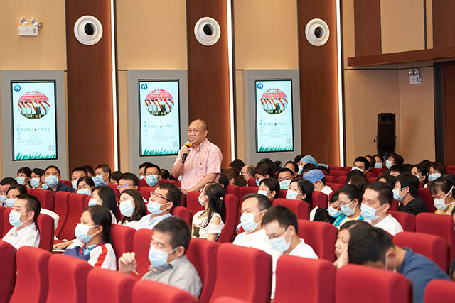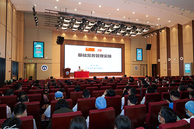 为贯彻落实中共中央办公厅《关于加强公立医院党的建设工作的意见》、《中国共产党支部工作条例(试行)》等文件精神,不断提升我院党务干部专业能力和管理水平,2020年10月9日上午,我院在白求恩学堂举办2020年全院党务干部培训,特别邀请了中共广东省委党校党史党建部张长明副教授前来授课,培训由党委副书记何斌同志主持,全院250余名党务干部参加了培训。