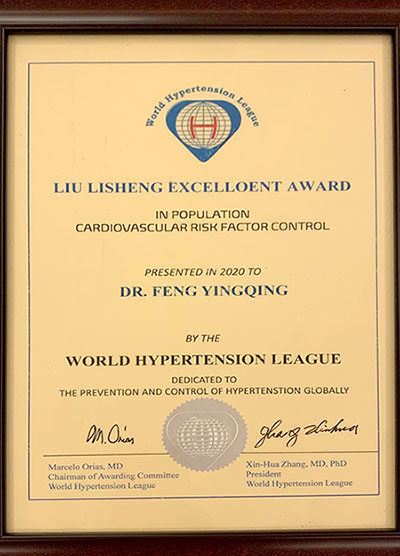令人欢欣鼓舞的是,在当天上午的开幕式中,由Marcelo Orias教授代表世界高血压联盟以视频会议的形式,在线公布了2020年世界高血压联盟杰出贡献奖的获奖名单,来自广东省人民医院的冯颖青教授获得“人群心血管危险因素防控杰出贡献奖”,成为中国唯一获此殊荣的心血管病专家。会议现场,世界高血压联盟前任主席刘丽笙教授、世界高血压联盟现任主席张新华为冯颖青教授颁奖。同时获奖的还有美国国家公共卫生官员、加州卫生部主任、美国波士顿布里格姆妇女医院教授等。