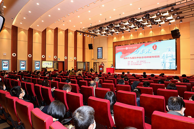 为深入学习宣传贯彻党的十九届五中全会精神,根据中共中央办公厅、广东省委有关要求,按照省委宣传部工作部署,1月20日下午4时,我院在白求恩学堂举办党的十九届五中全会精神宣讲会,邀请广东省文联党组书记、专职副主席、省委十九届五中全会宣讲团成员王晓书记做辅导报告。报告会由党委副书记何斌同志主持,院领导、党委理论中心组成员、党总支书记、支部书记等全院600余名党员干部、职工在主会场及分会场参加学习活动。