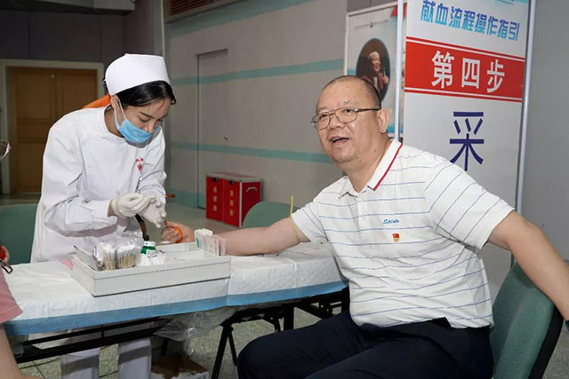 纪委书记严晋、副院长袁向东、副院长李欣也悄然来到现场,在人群中献血。