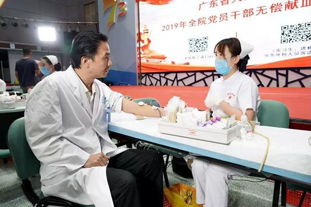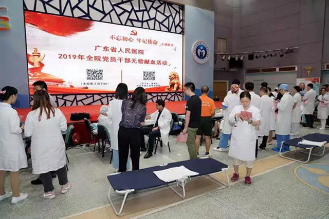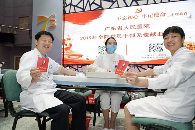 8月19日医师节当天,广东省人民医院的医务人员用一个特殊的方式来过节:结合主题教育,医院党委倡议全体党员在身体允许的情况下,争当表率,踊跃参与无偿献血活动。