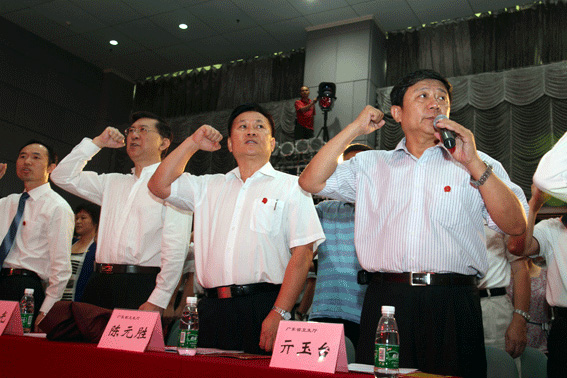 省纪委驻卫生厅纪检组长、厅直党委书记亓玉台(持话筒者)在领誓