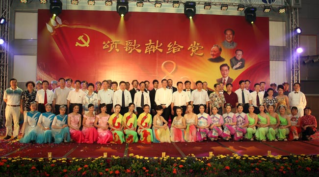 近两个小时别开生面的精彩演出中,来自我院10个基层党组织的上百名党员,用嘹亮豪迈的歌曲、饱含深情的诵读、优美甜蜜的舞蹈、气势宏伟的情景剧等形式,为党的89岁生日献上真诚的祝福。同时不断播放的我党革命、建设、改革时期的真实历史照片,给在场的每一位观众上了一堂实实在在的情景党课。