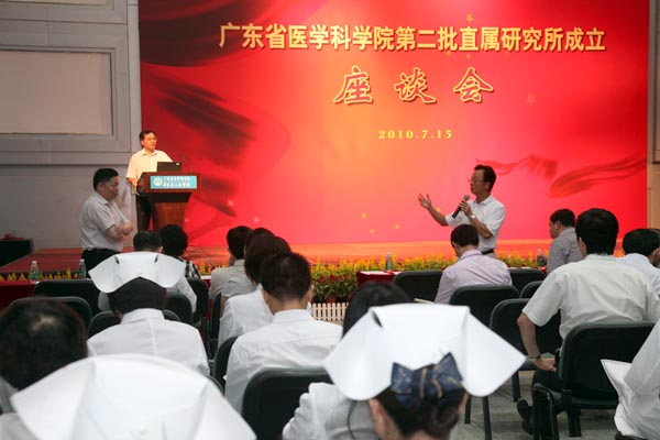 7月15日上午,主体楼多功能厅举办了广东省医学科学院第二批直属研究所成立座谈会。广东省医学科学院于2009年5月于我院恢复成立,经过一年的成长和发展,继年初成立神经科学研究所后,第二批直属研究所,包括临床药理研究所、医学影像学研究所、卫生经济与管理研究所和消化疾病研究所,其成立也在充分的准备中。此次座谈会主要是四个直属研究所汇报各自的筹备情况和研讨未来发展的战略思路。我院院领导班子出席了座谈会,副院长吴一龙担任主持。