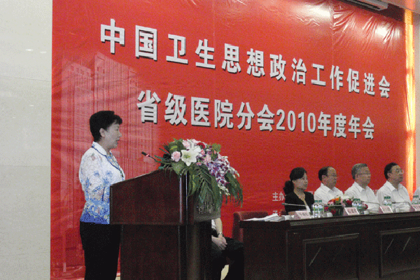 9月10日,中国卫生思想工作促进会省级医院分会2010年度年会在沈阳召开。卫生部副部长马晓伟、原副部长孙隆椿、医管司司长张宗久、医政司副司长赵明钢等领导出席了会议。我院党委副书记崔建星、机关党总支书记苏卓明、平洲党总支书记冯丹宇三人参加了本次年会。