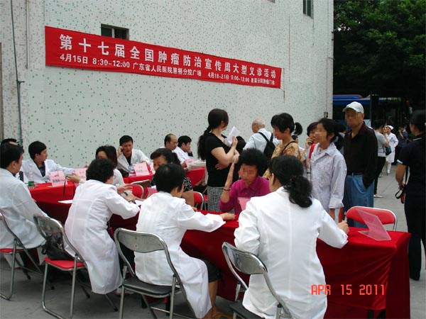 “第十七届全国肿瘤防治宣传周”系列活动于4月15日—21日在我院惠福分院启动。15日当天,我院肿瘤内科、儿童血液肿瘤科、头颈肿瘤科、胃肠肿瘤科、肝胆肿瘤科、脑肿瘤科、血液科、肺科、乳腺科、胸外科、介入科、放疗科、妇科、中医科、营养科、心理科、疼痛科等20名专家组成强大的医疗队伍,在惠福分院广场为广大市民提供义诊咨询。
