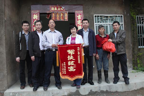 本次活动,我院还为黄华村小学赠送了30台电脑,为改善学校的教学硬件提供帮扶。为感谢我院的帮扶,二年来黄华村贫困户共向我院赠送了20面锦旗。