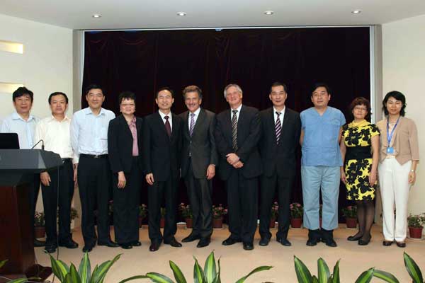 当天下午,三位美国专家受邀在我院国际会议厅进行了学术讲座,部分职能处室和临床科室人员参加了此次学术讲座,会议由庄建院长主持,郭莉莉副主任向来宾介绍了我院的基本情况并回顾了双方的合作历史。Nagler院长介绍了贝斯以色列医院的近况,并就美国医疗的改革与发展为主题做了演讲, Bernard总监就实施循证医学和疾病管理促进医疗质量为主题做了报告。随后,该院心内科专家Tak.W Kwan进行了冠状动脉血运重建适宜标准的演讲。名誉院长林曙光、院长庄建、副院长吴一龙会见并宴请了外宾,双方交谈甚欢,今年我院将继续加大外派力量,延续两院的合作成果。