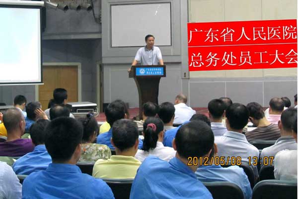 5月8日,利用中午休息时间,总务处召开了一次全处职工大会,主管后勤副院长袁向东要求:后勤工作要“一盘棋”,全处各科室务必按照医院制定的战略目标,立足本职岗位,“扮演”好职业角色,不分8小时内外,都要以高度的责任心和高水平的服务,为全院医疗的安全运行提供更优更精的后勤保障。一边端着盒饭,一边开展激烈的工作讨论,成了会议上的特殊场景。“后勤服务工作面广事多,特别庞杂,很多事情看似不起眼,却关系全局,责任重大”,来院工作2年的大学生小江不断地提到“责任心”和“服务水平”,他也说,这些都是处室工作中大家最常聊起的字眼。