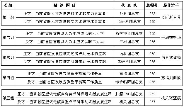 辩论赛中分数最高的两支队伍——机关队和外科队将于5月初进行总决赛。