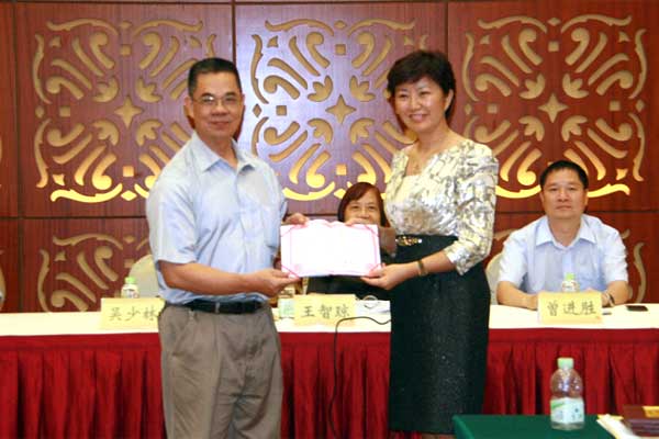 吴少林副会长兼秘书长给王丽娟主委颁发证书