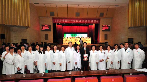 为学习贯彻党的十八大精神,进一步弘扬“珍爱生命、崇尚科学、乐于奉献、团结进取”的广东医生职业精神,11月20日上午,由省委宣传部、省卫生厅等单位主办的“广东省卫生系统学习十八大精神论坛暨《广东医生》新书发布会”在广东科学馆举行。省卫生厅党组书记陈元胜、副书记亓玉台等领导出席活动,广州地区卫生系统党员及医护人员代表共600多人参加了活动。我院党委副书记崔建星带领医院党员干部代表参加了本次活动。