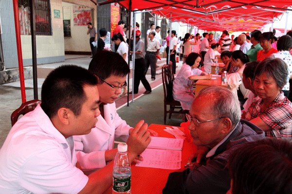 按照广东省委、省政府新一轮扶贫开发“双到”工作部署,我院紧锣密鼓地开展了新一轮扶贫工作。6月27日至28日,在“广东扶贫济困日”到来之际,医院党委副书记崔建星、副院长林展翼带领一批内、外、妇、儿、中医科等各个专业的专家分两支医疗队赴五华县城和新的帮扶点转水镇下潭村开展扶贫义诊、免费赠药、发放健康手册活动。