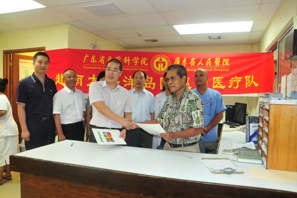 在密克罗尼西亚,我院还与当地医院签署了合作备忘录,并向当地医院赠送了医院及科室宣传册,手术录象带。