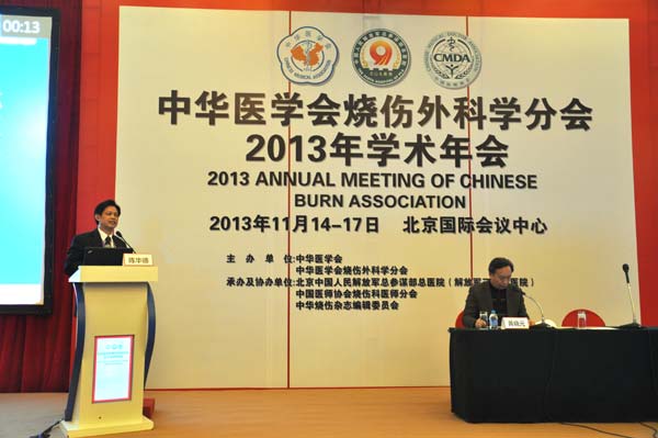 中华医学会烧伤外科学分会2013年第十四届学术年会暨北京国际烧伤研讨会于2013年11月在首都北京举行。本次会议是烧伤专业的每年一度的全国性学术年会,也是中华医学会烧伤分会成立30周年的日子。本次会议来自全世界的14个国家的2100多名烧伤专家参加了盛会,并在会场表达了恭贺之声。