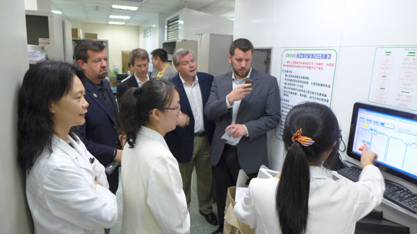 何斌副院长、药学部杨敏主任等接待来宾。在了解了我院临床药师培训情况后,来宾参观了东川药房、药库、PIVAS、中药房,同时参观了肾内科病区。