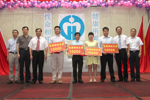 为表彰先进,鼓励研究生在院学习期间刻苦钻研,医院对获得2014年优秀研究生和优秀研究生干部进行奖励。吴一龙副院长寄语所有毕业生,希望他们能继续积极进取、脚踏实地,在新的工作岗位上取得更加辉煌的成绩。庄建院长、林曙光名誉院长和耿庆山书记为获奖的研究生颁发奖状和奖金。
