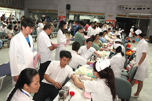 省医员工素有参加无偿献血的传统,自1995年以来,该院先后组织职工无偿献血25次,2006年起每年组织两次,至今累计无偿献血196.74万毫升,共计无偿献血9504人次。